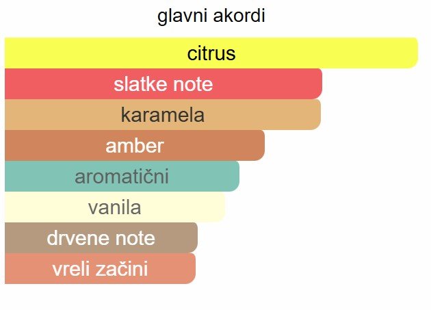 - Gornje note: Mandarina, Narandža, Šafran, Žalfija
