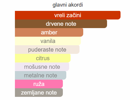 - Gornje note: Šafran, Đumbir, Sicilijanska mandarina, Sicilijanski Bergamot